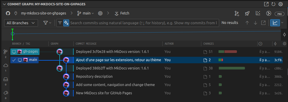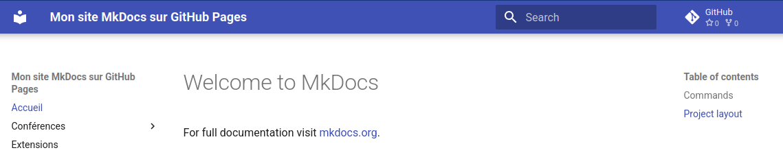 gh-pages, uniquement avec les fichiers générés$ mkdocs gh-deploy