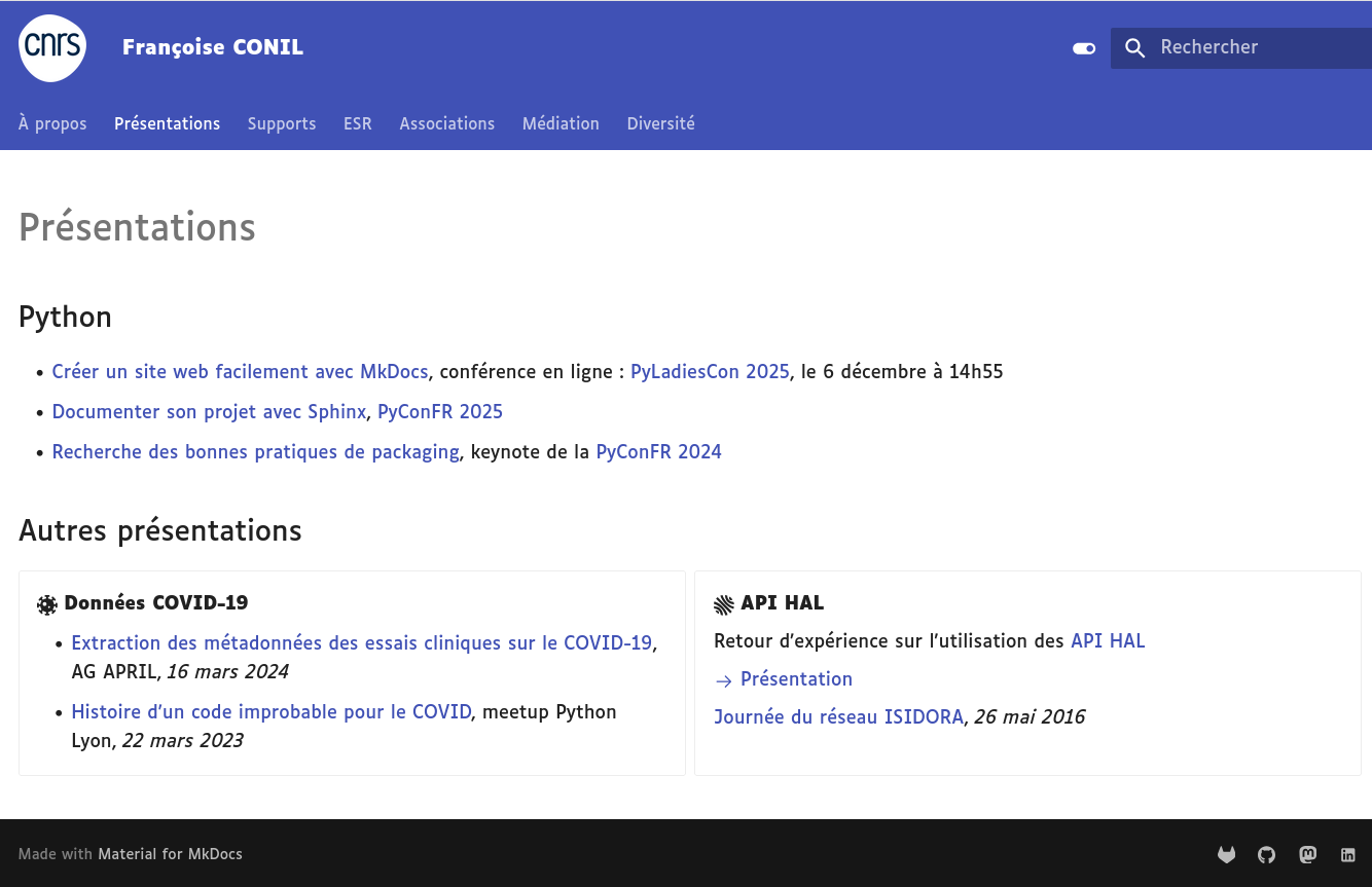 MkDocs, Sphinx, Jupyter Book, …Quelques informations