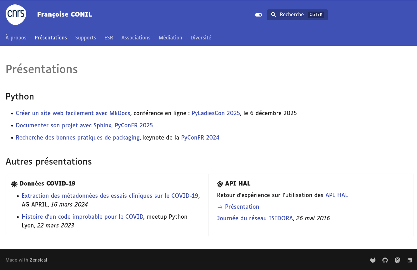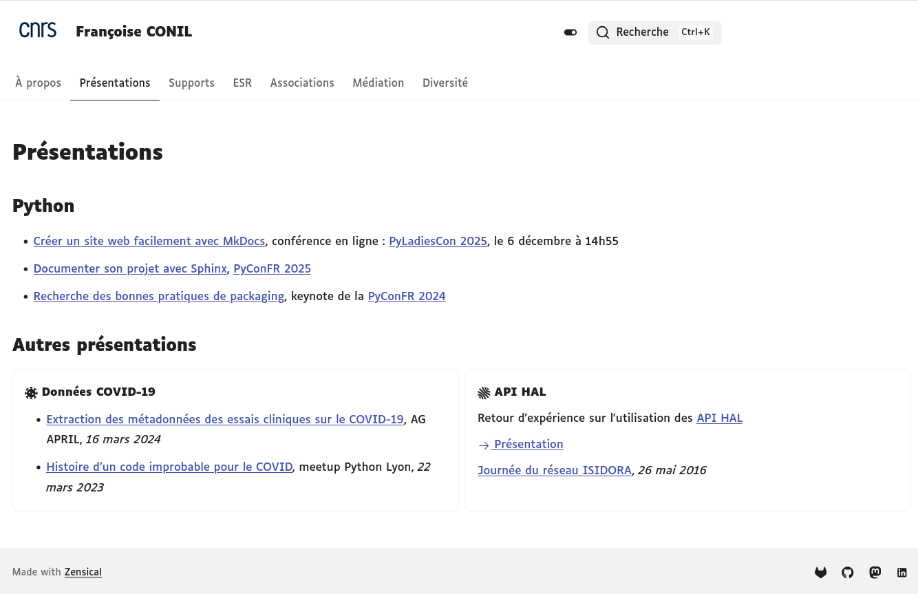 J’ai basculé facilement mes pages personnelles vers le nouveau framework Zensical