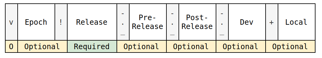 La structure d’un identifiant de version Python 1 est spécifiée par la PEP 440 2.